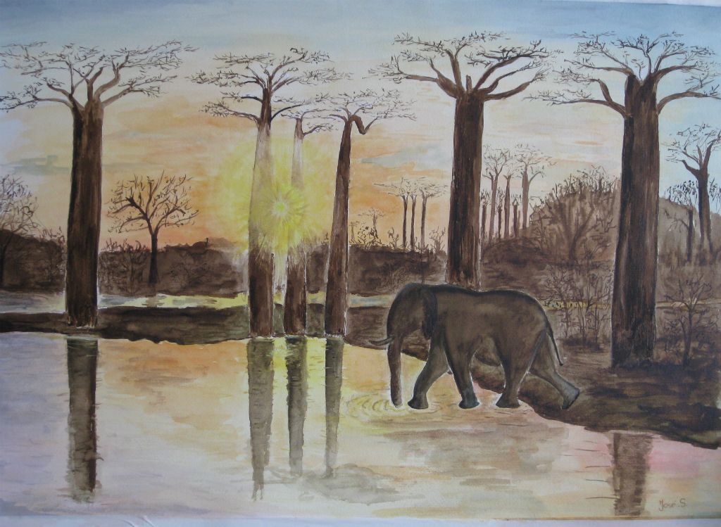 olifant en baobab boom Afrika