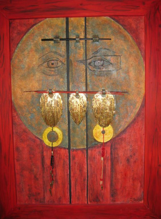 Chinese kast papier op hout 60x80 cm
