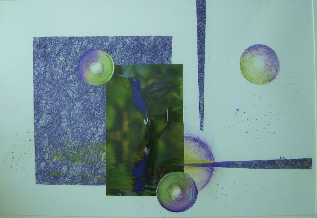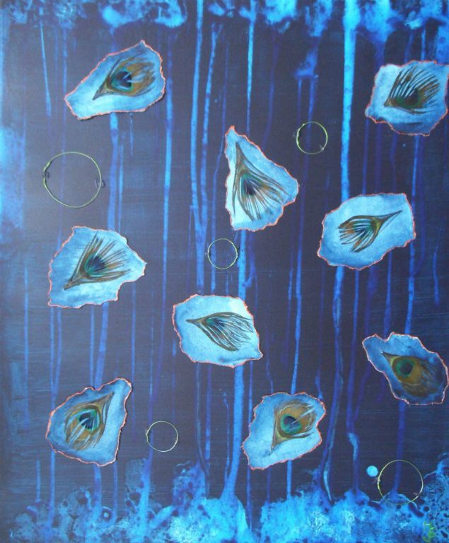 abstract met pauwenveertjes en acryl