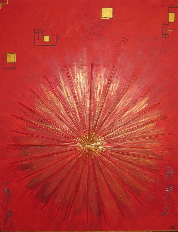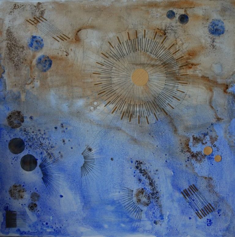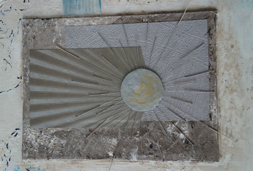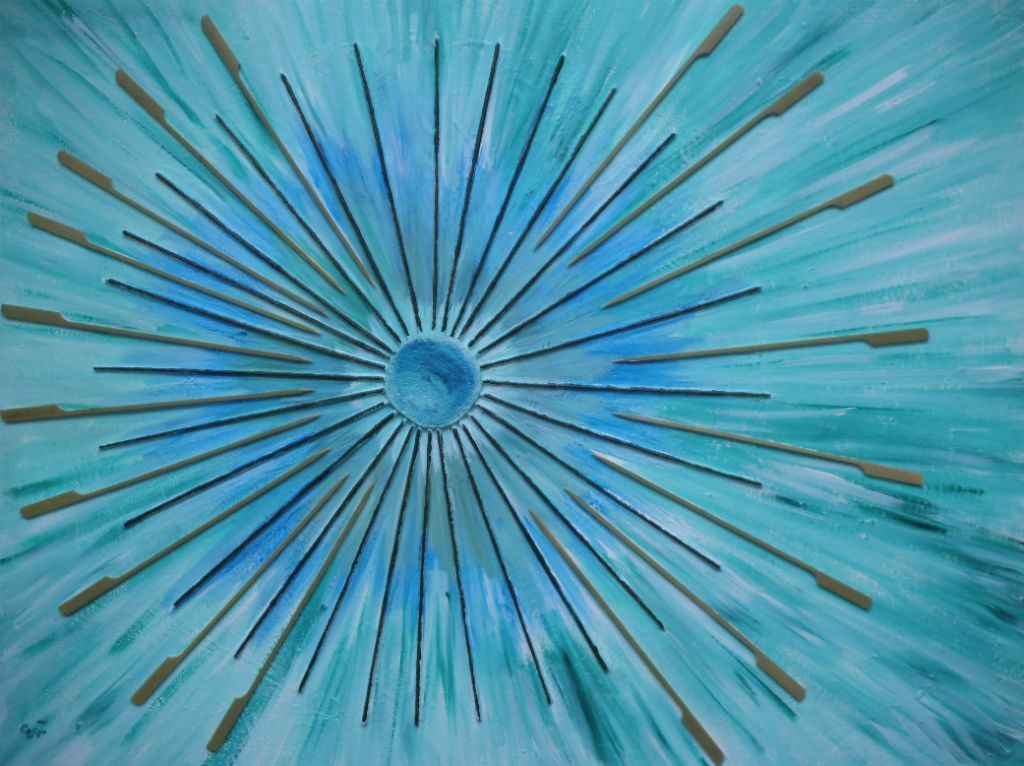 abstract met acupunctuur naalden en acryl verkocht