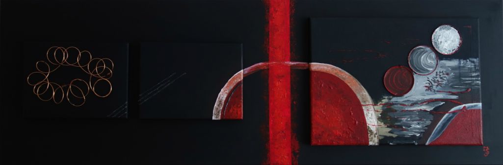 abstract met koperdraad, armbanden en acryl