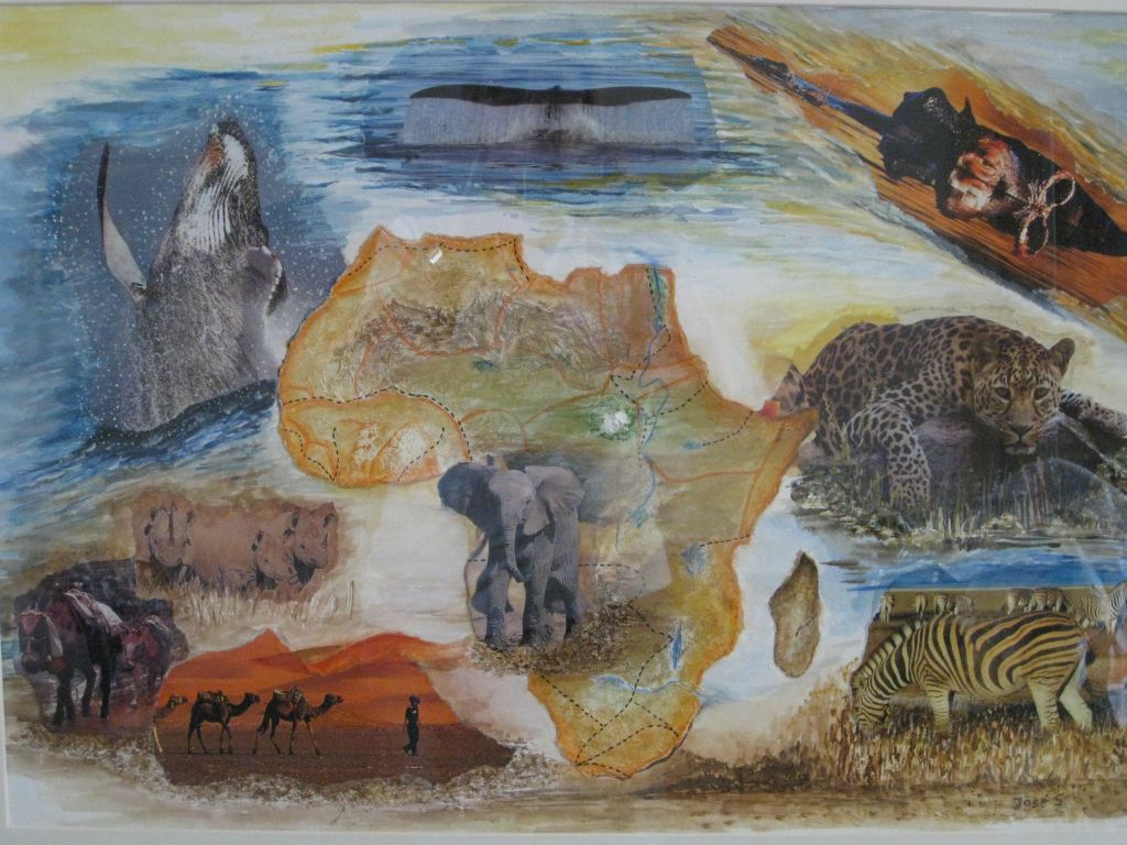 Afrika foto's, zand en aquarel 70x50 cm