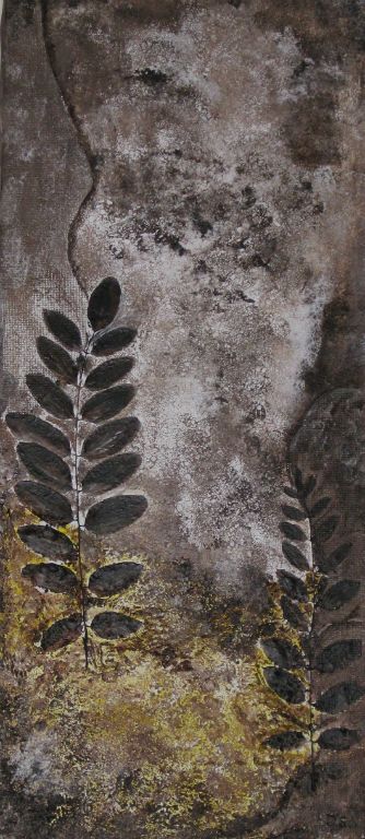 abstract met zand en blaadjes acryl