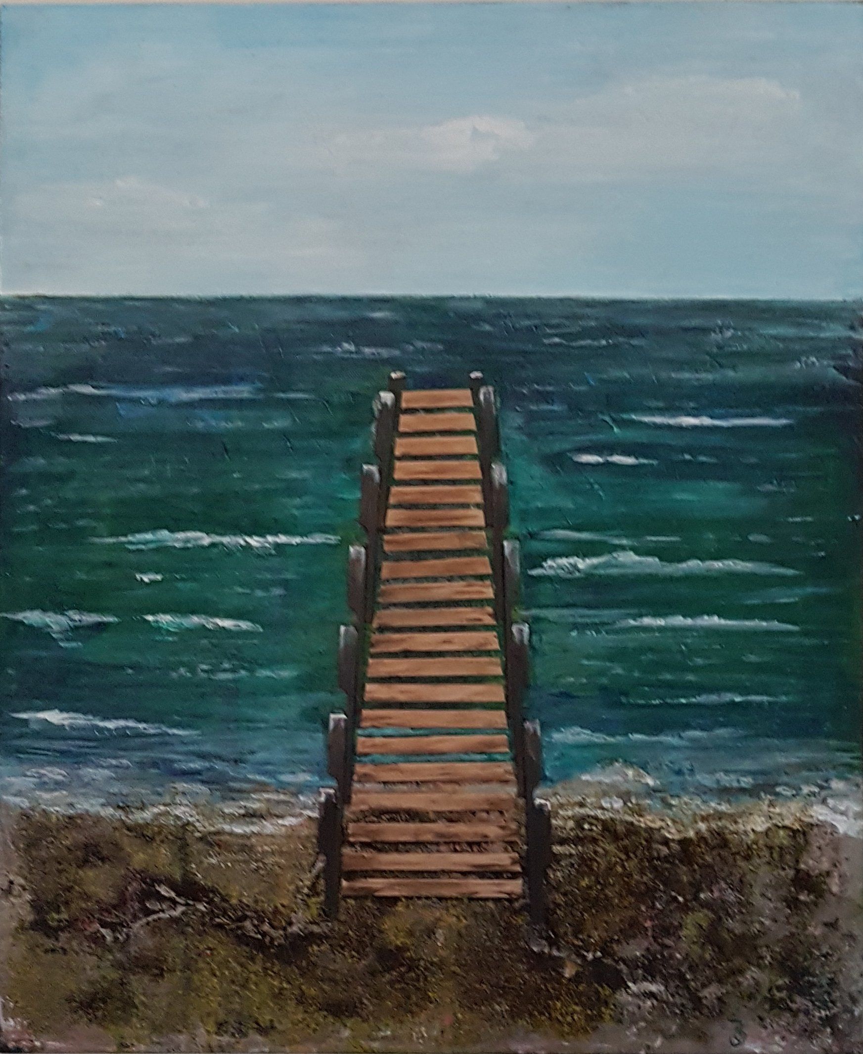 abstracte met acryl en halsketting