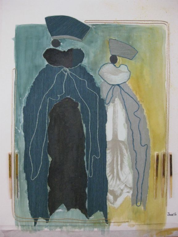 2 dames van behangpapier en aquarel 60x80 cm