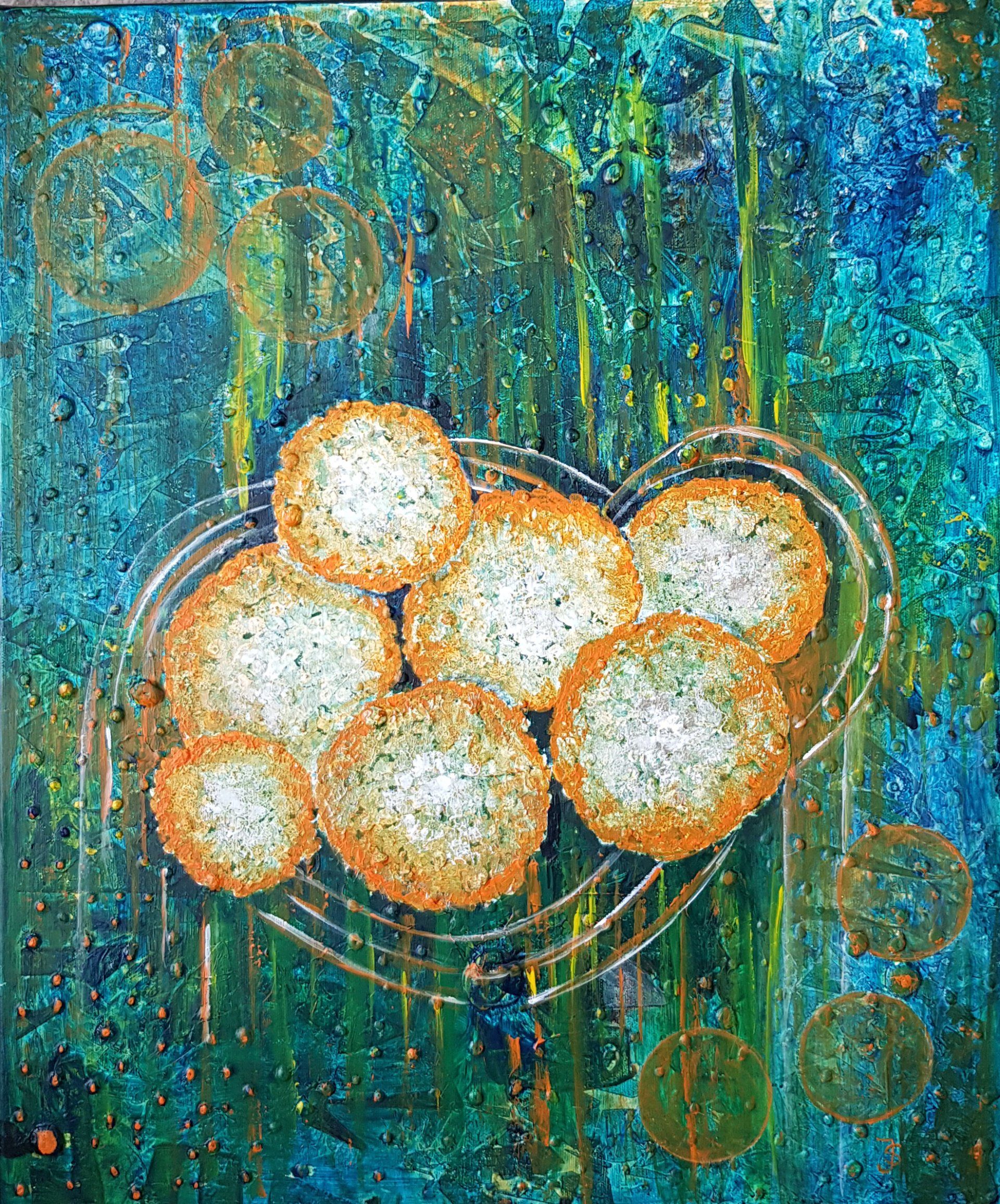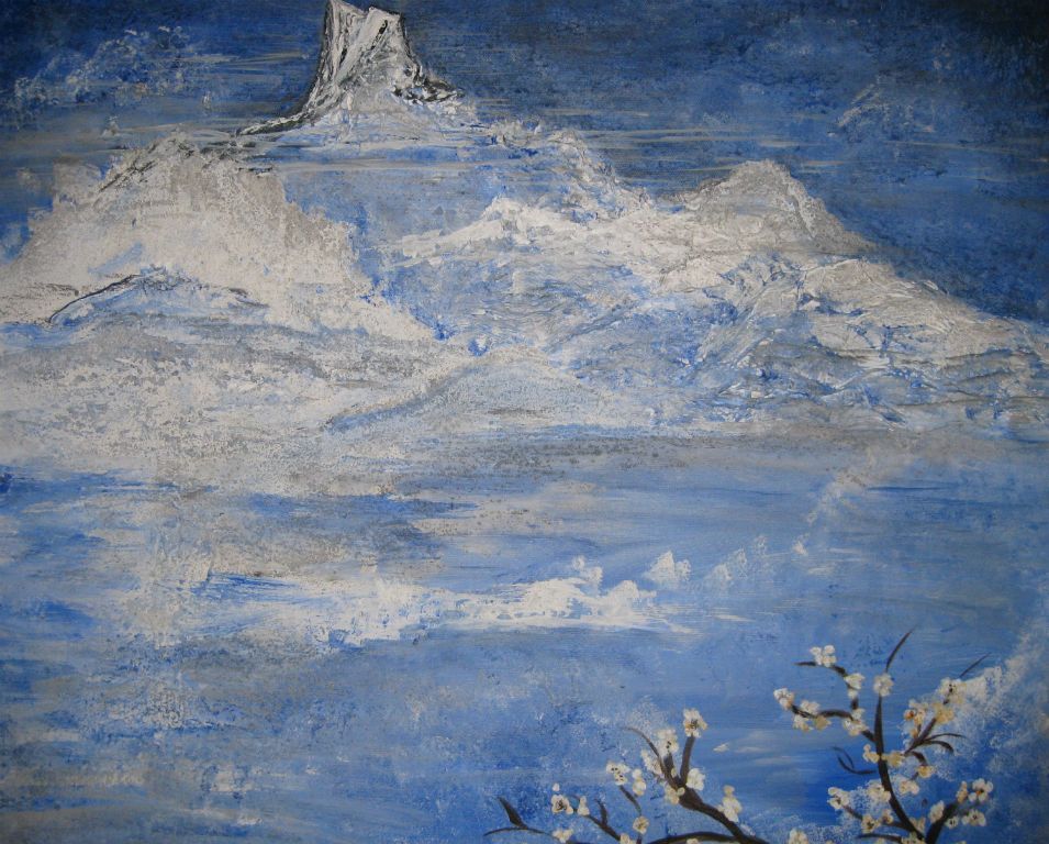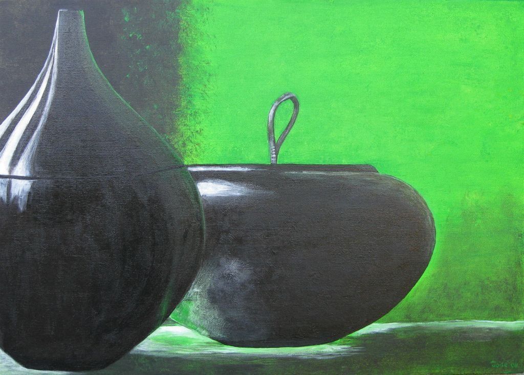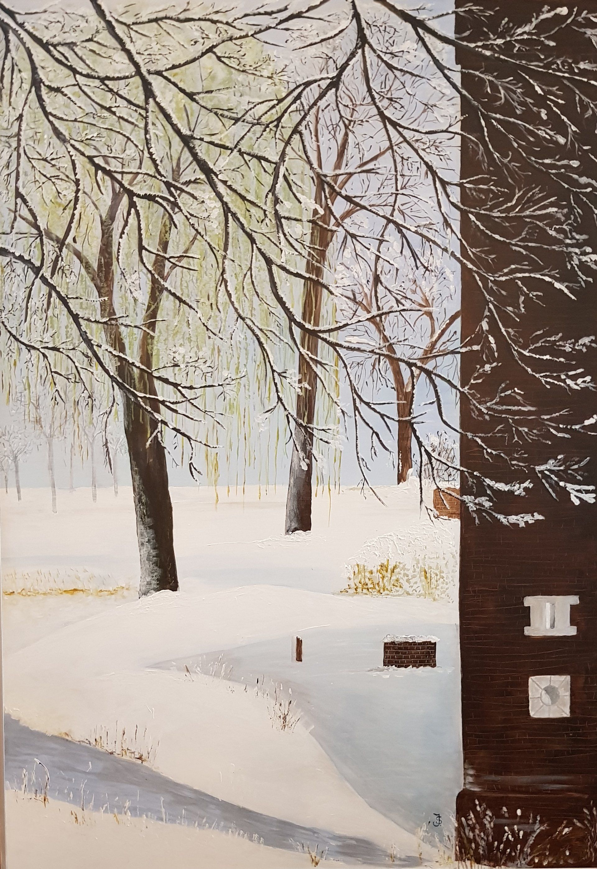 witte hortensia's op een groene achtergrond met structuur 50x60 cm