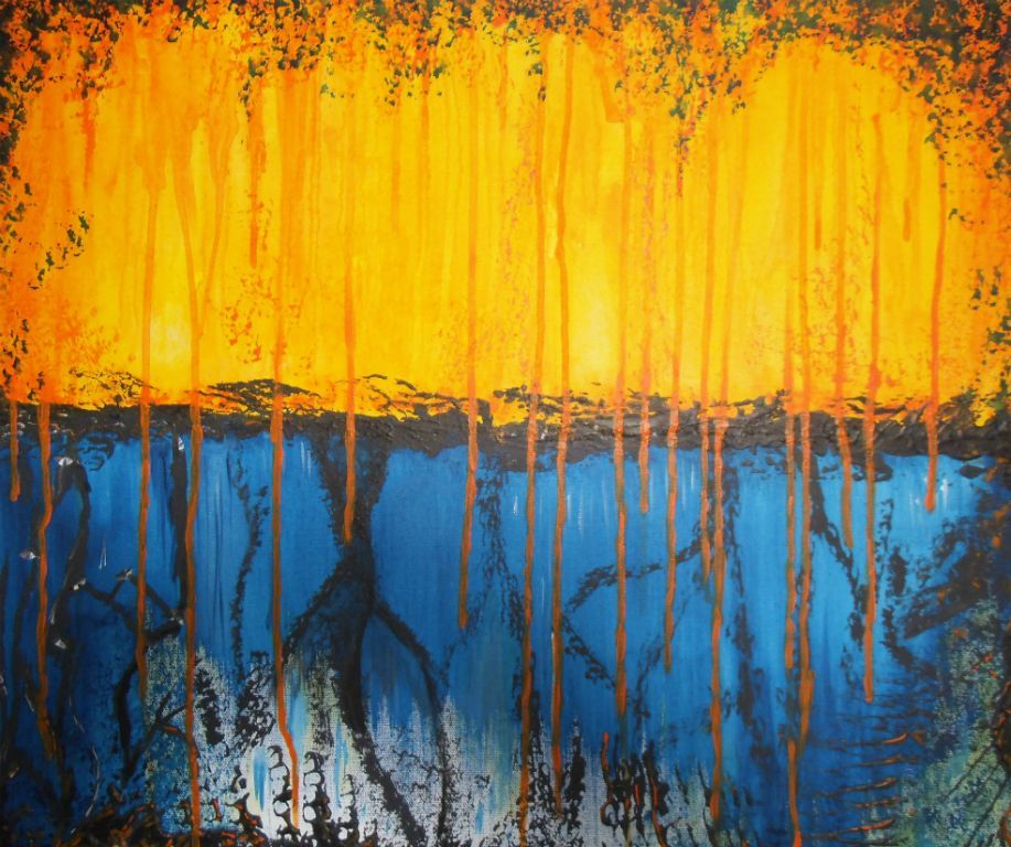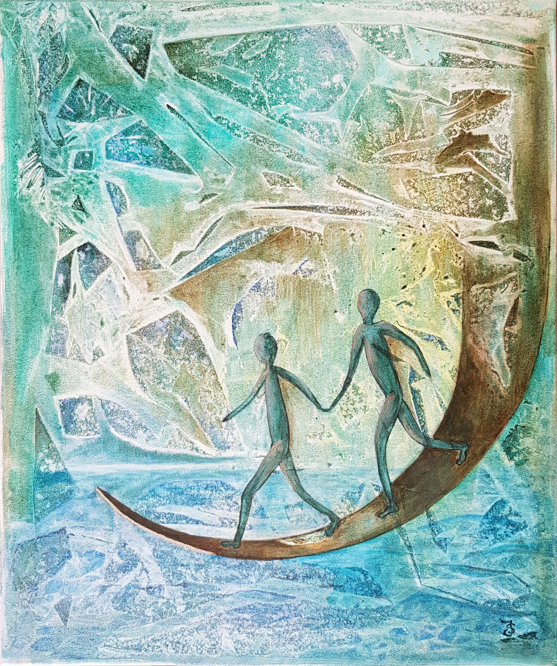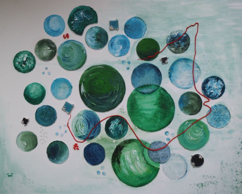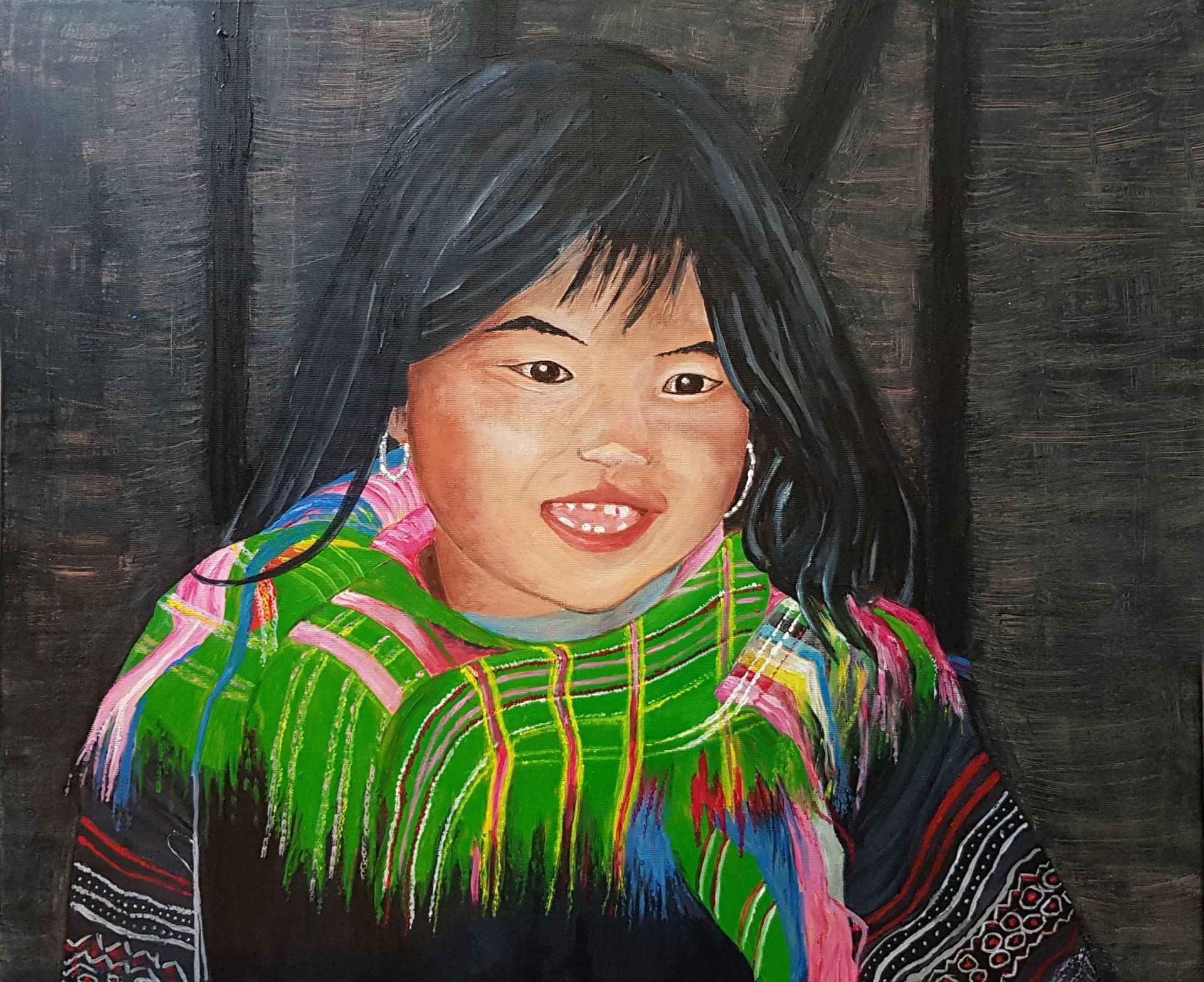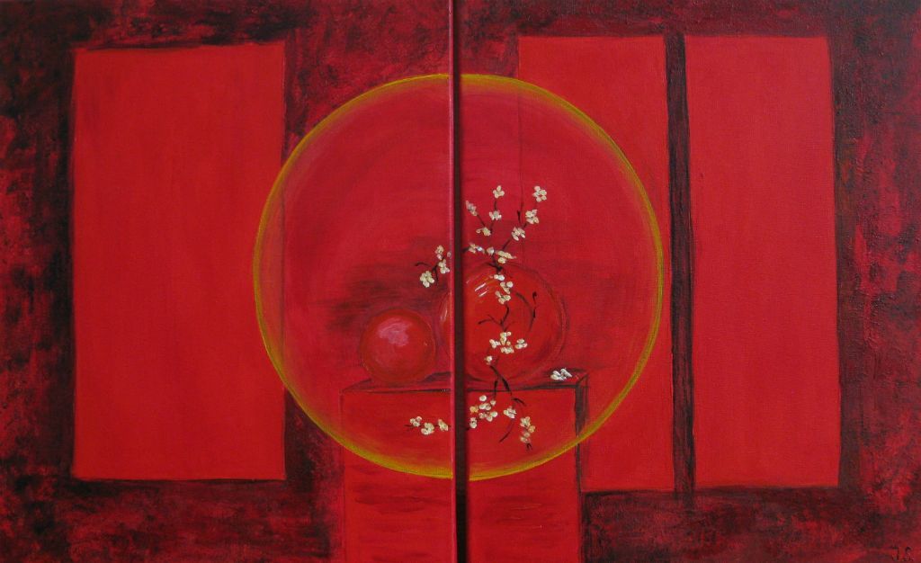 witte hortensia's op een groene achtergrond met structuur 50x60 cm